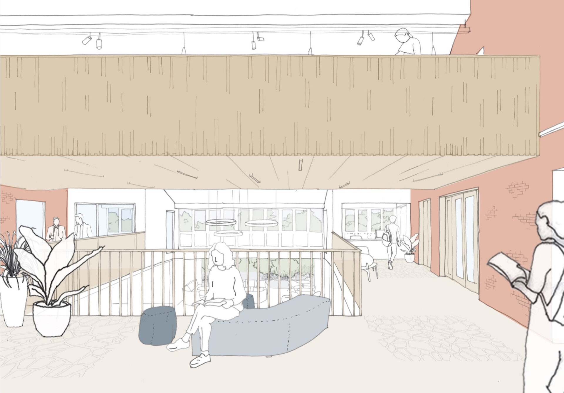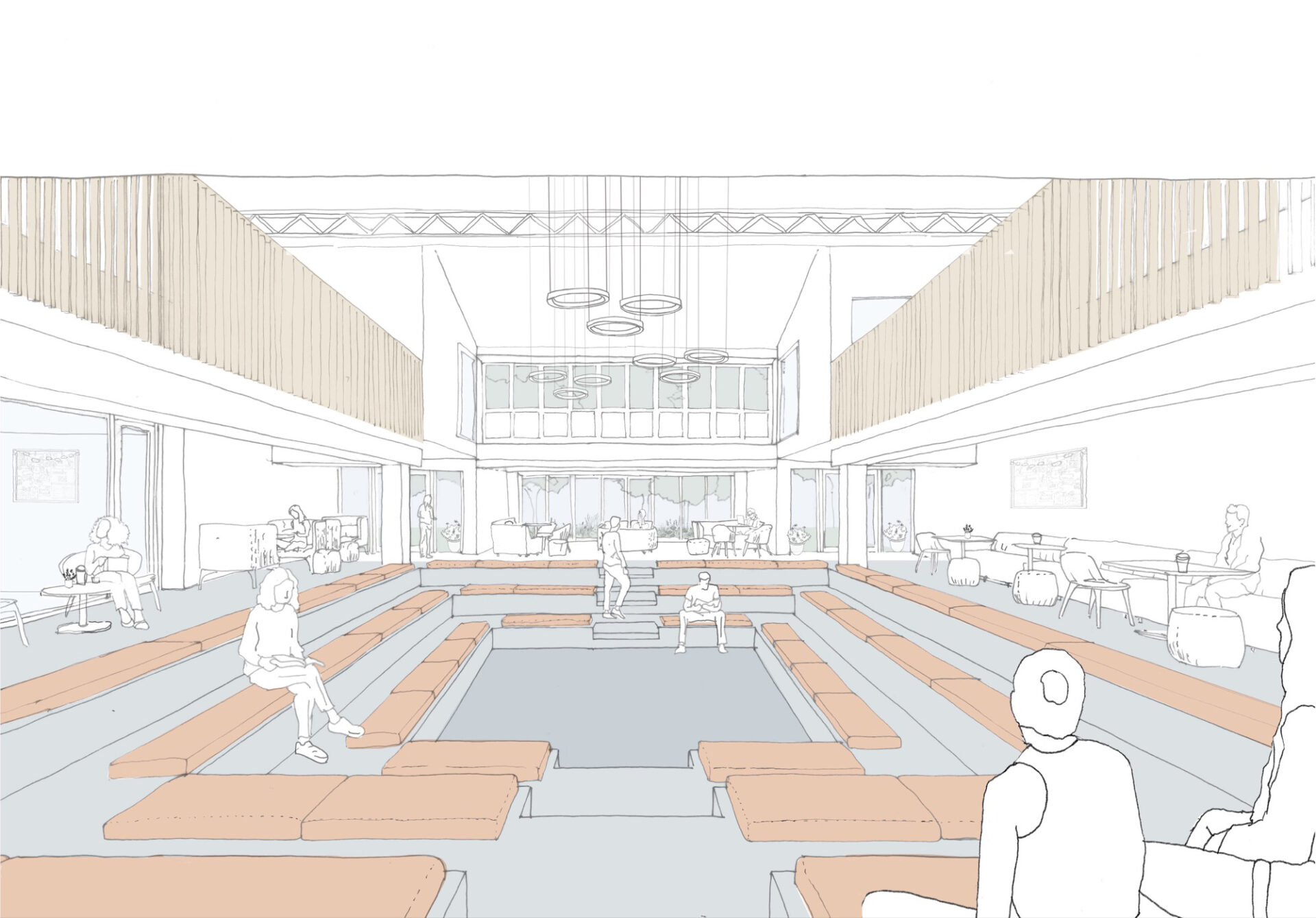This is a tricky project that provides the school with a versatile new learning space within a crescent of 1990s buildings. With a deep floor plan and low ceiling height, our challenge was to bring more natural light to the centre of the plan.