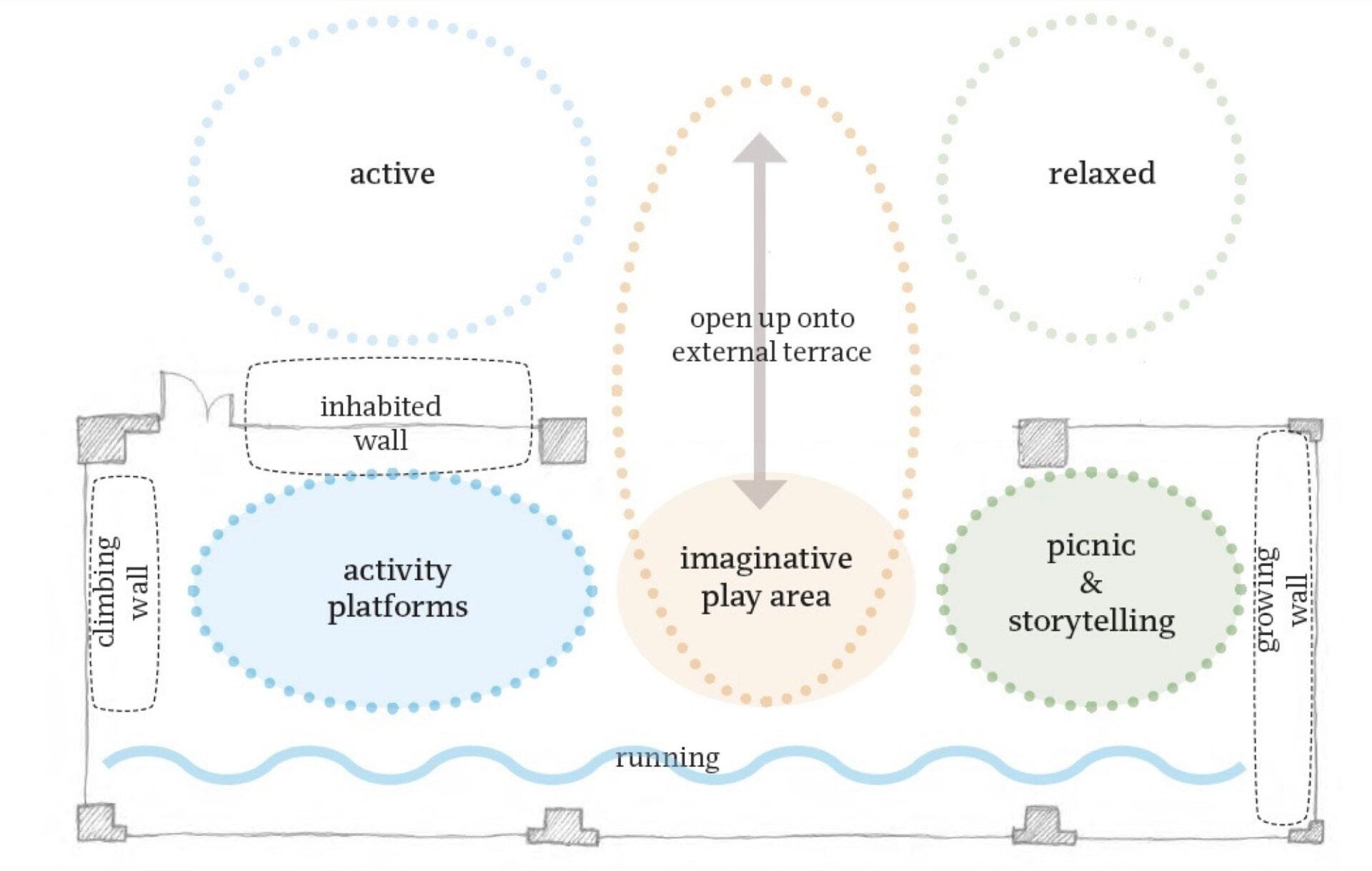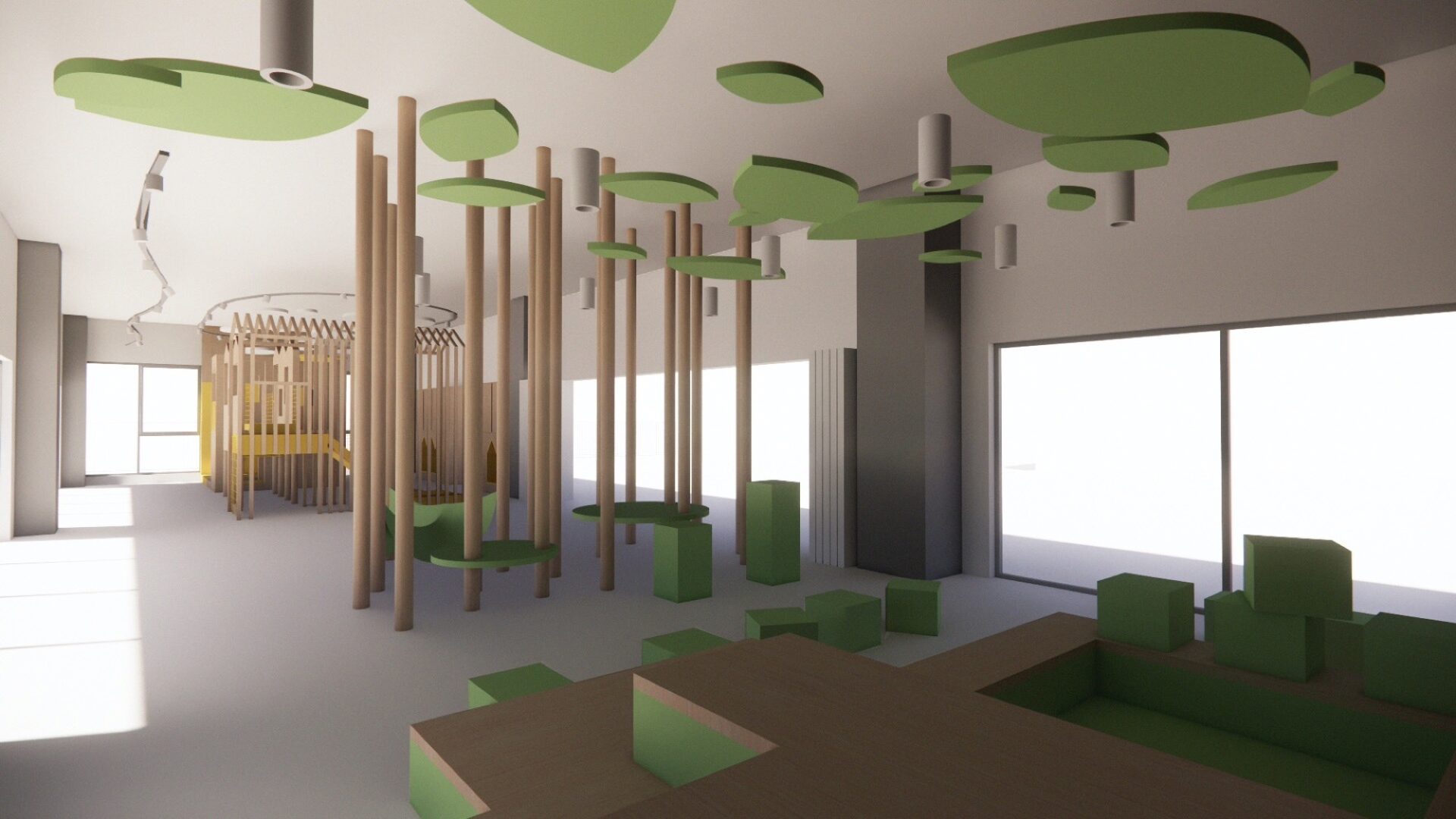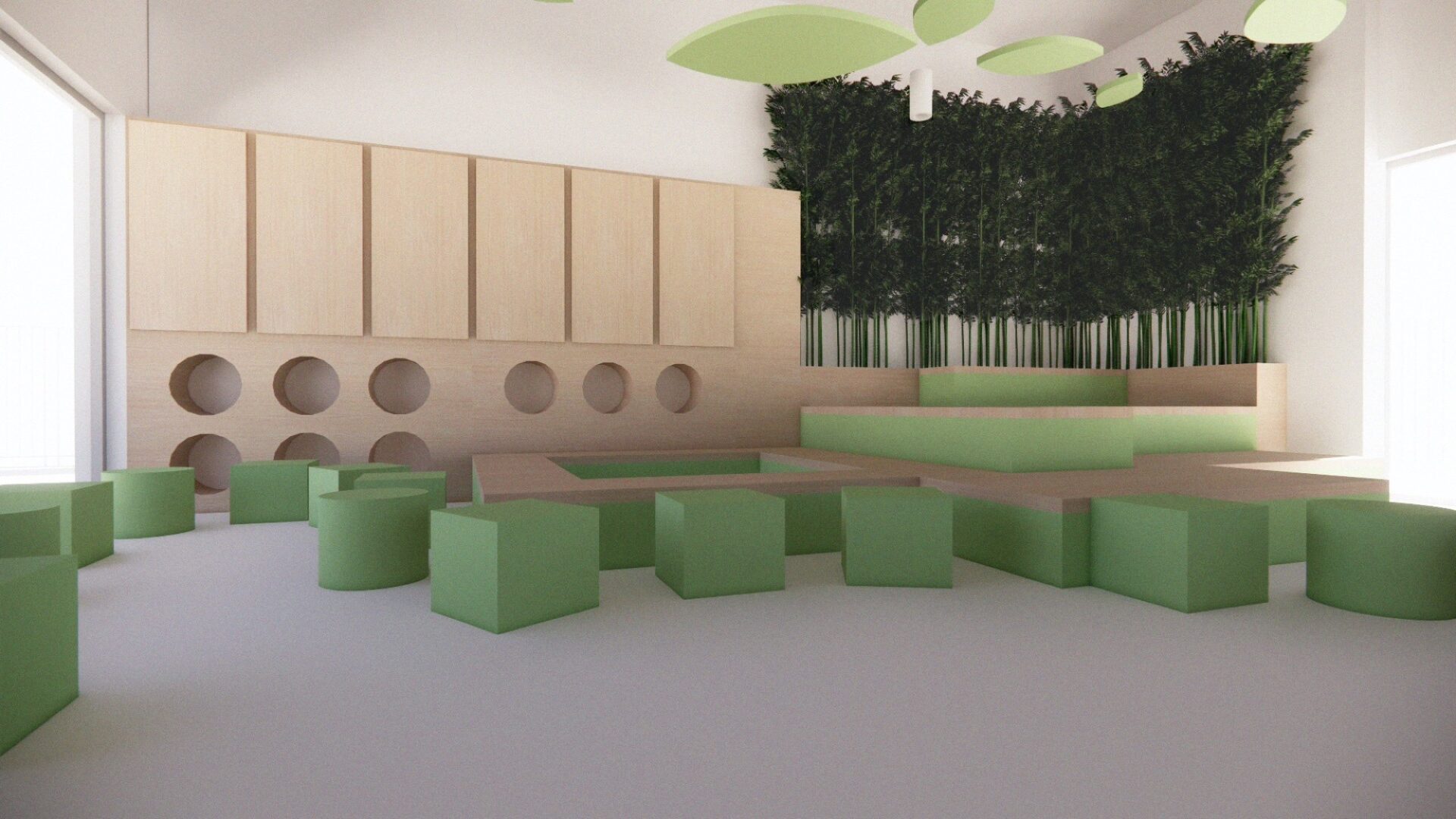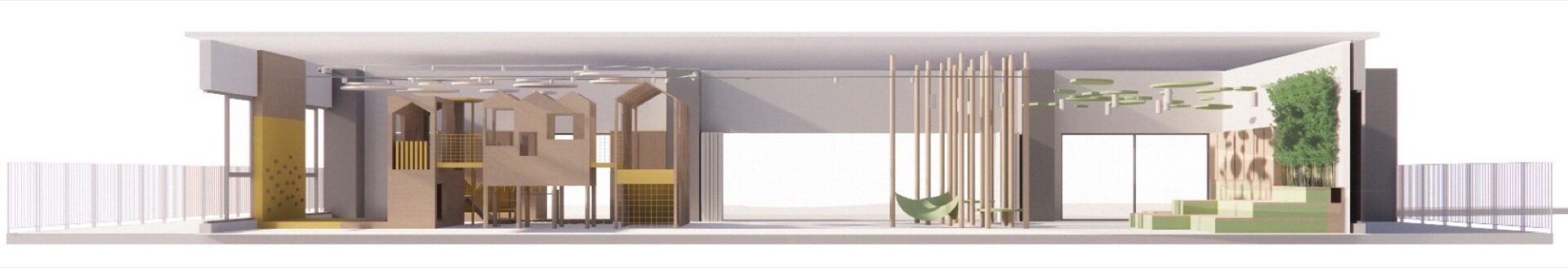 The brief called for an indoor landscape that stimulates creativity and playfulness, designed to meet children’s needs on days when the heat prevents them playing outside.