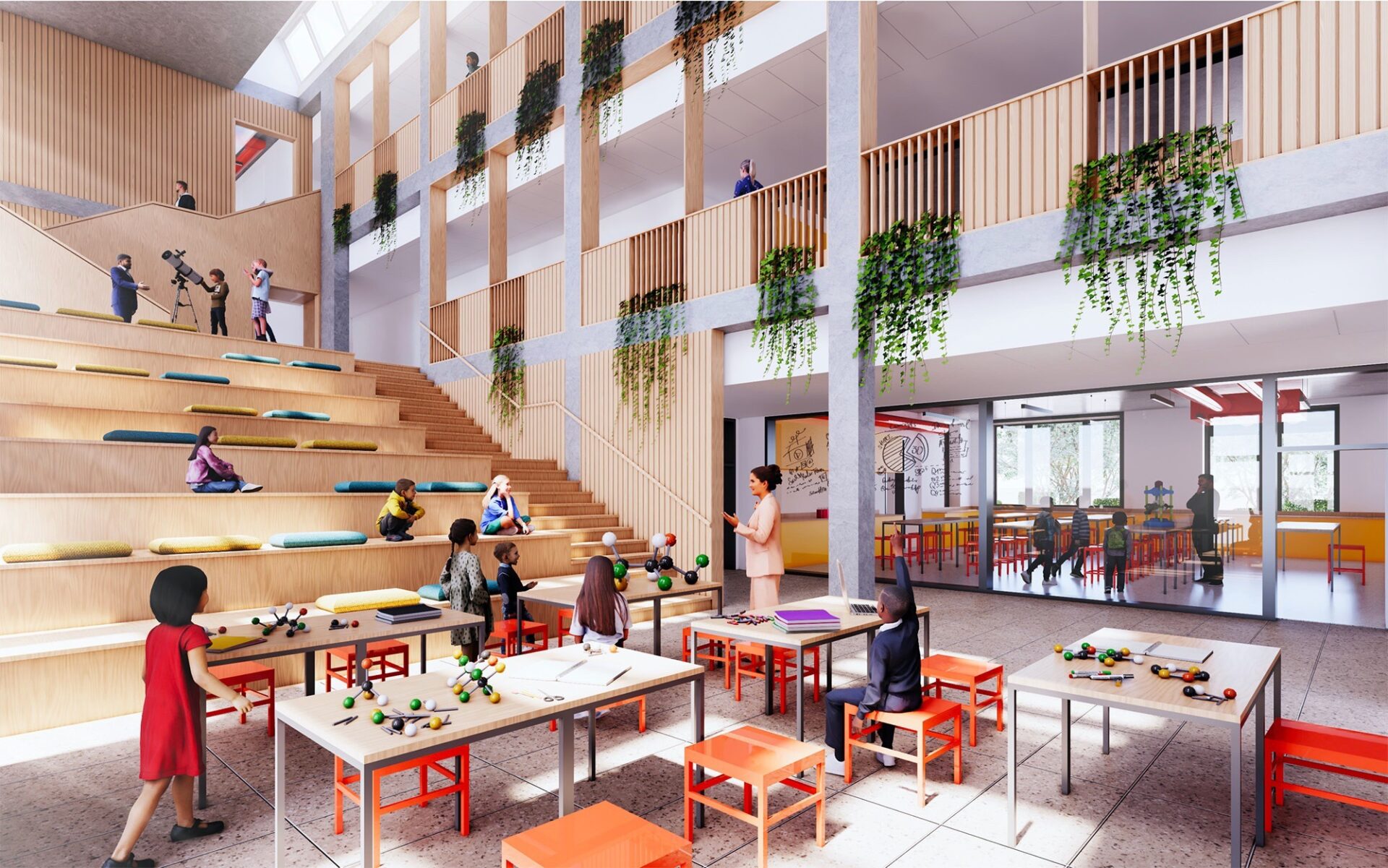 You’d be forgiven for asking what partnerships means, so let’s start there: the school is committed to outreach within a local community of schools, and wanted the new building to include a dedicated large lab where MCS science teachers can teach pupils from their partner schools.