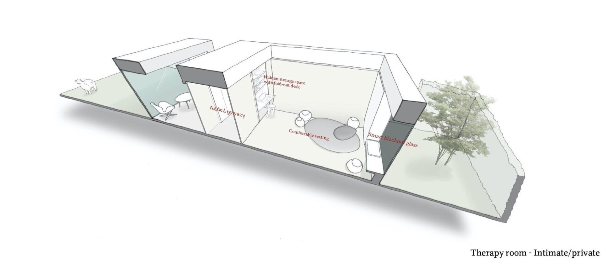 In 2018 we won a competition to design a centre to treat people with depression. Sadly, the pandemic and funding complications prevented the project from gathering full steam, but we learnt a lot from a client at the cutting edge of new treatment.